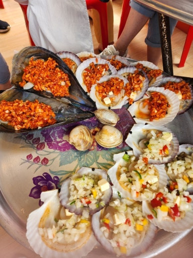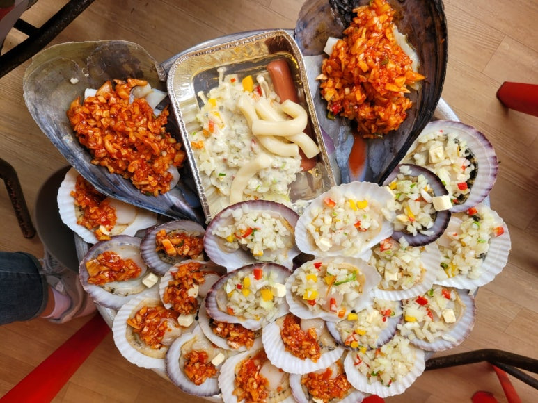태풍이 휩쓸고 간 뒤에 주차장 아래에 조개구이촌이 잘 정비가 되어있더라고요