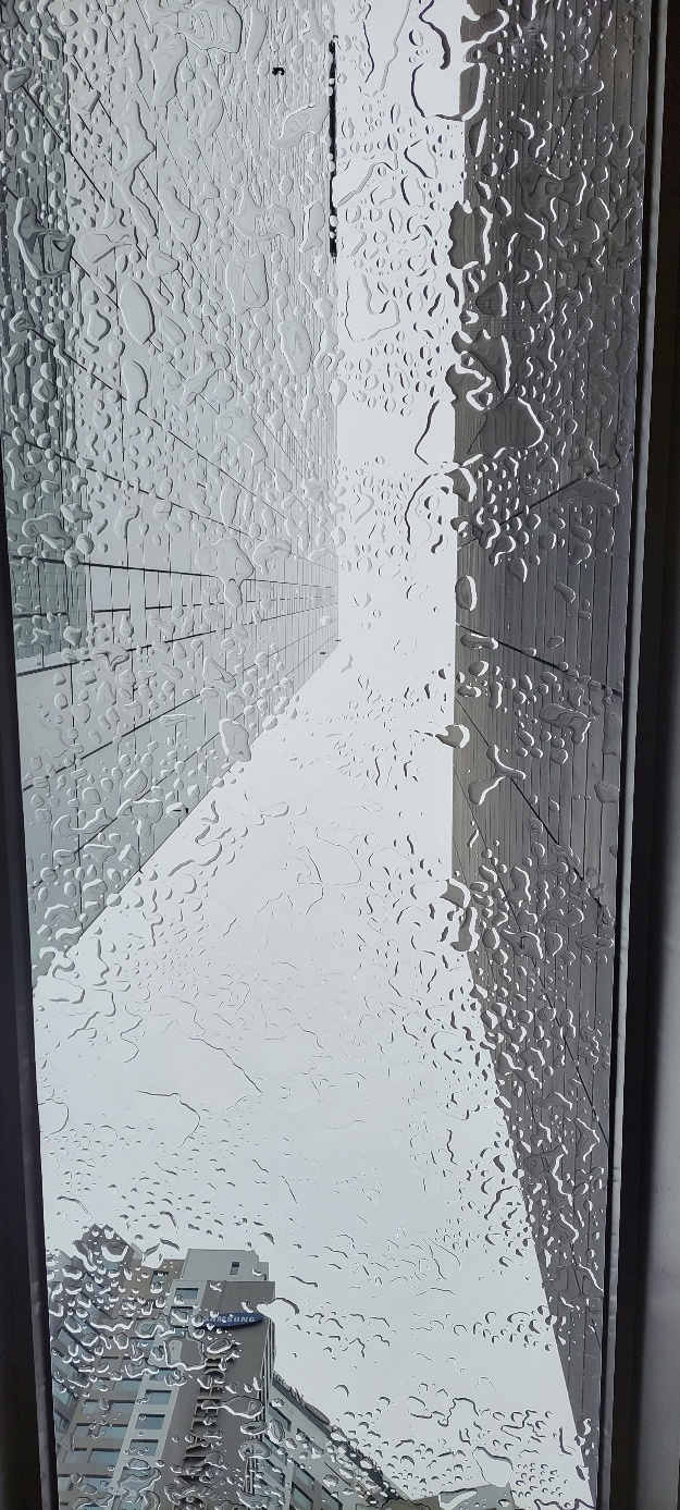 중정의 통창사이로 내리는 비가 이뿌기도 하고~ ㅎㅎ