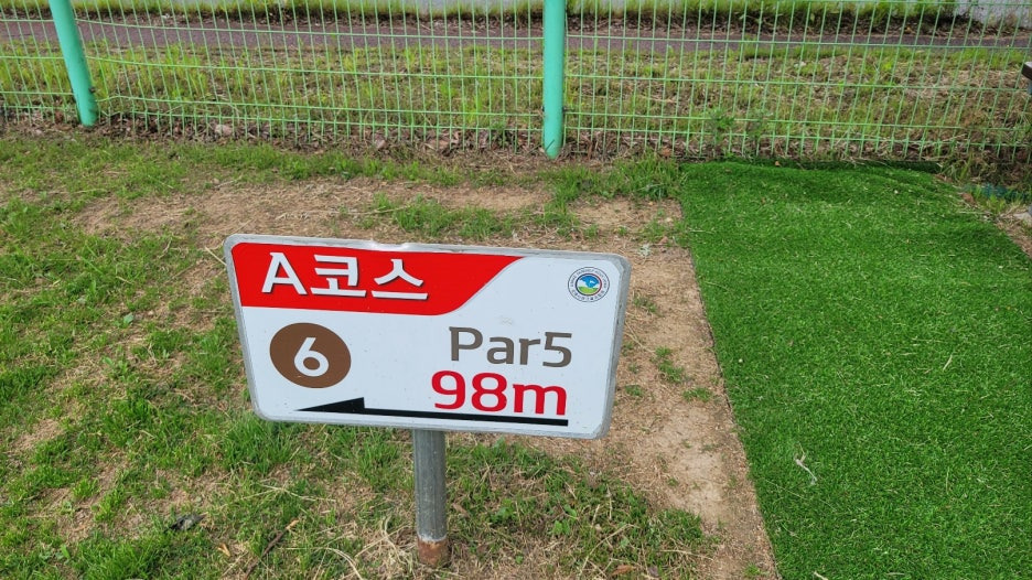 (홀표지판 확인가능 내용 : 홀의 순저. 표준타수. 거리 입니다. 코스도 알수있게 그림으로 그려져 있는 표지판도 있지만 조만강은 B코스 1홀을 제외하고 거의 직선입니다.)