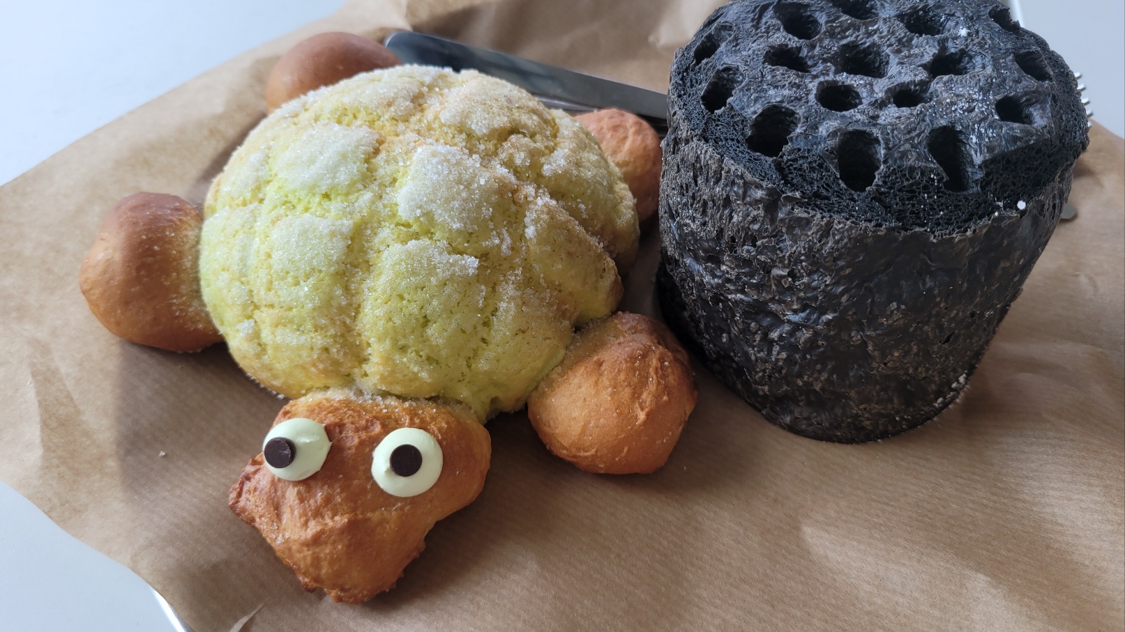 연탄빵 안은... 생크림이 들어가 있고 ... 거북이는 레몬맛생크림이 들어가 있어요~