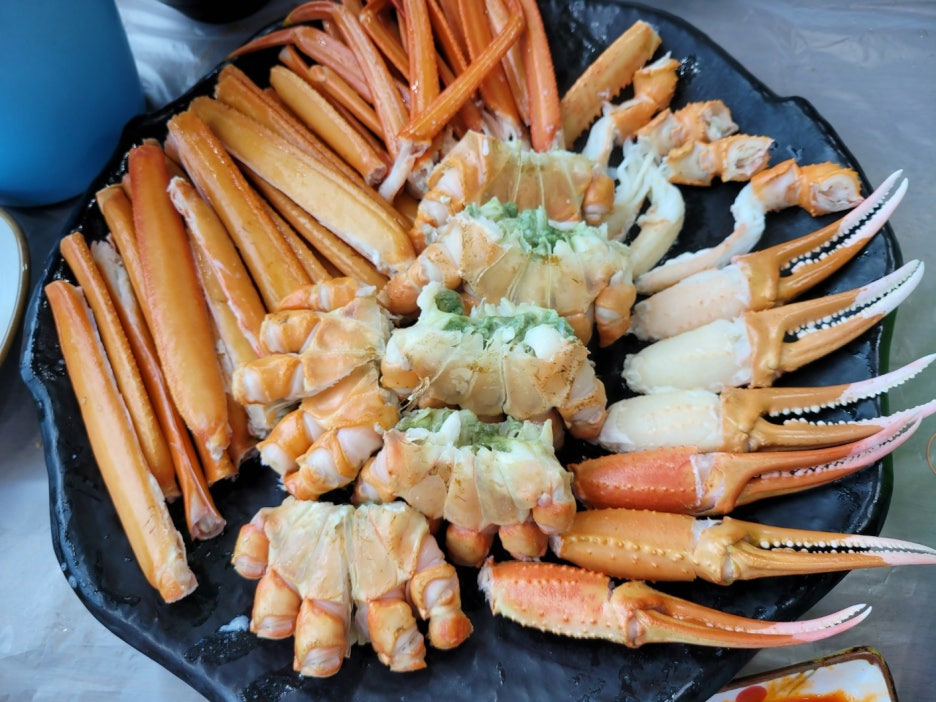 주~ 메뉴가 나오기 전에 시원한 물회가 에피타이저로 나와주십니다.~ 메콤달큰하고 시원~한 물회 ... 대게먹기전 입맛 돋우기에 적합하죠